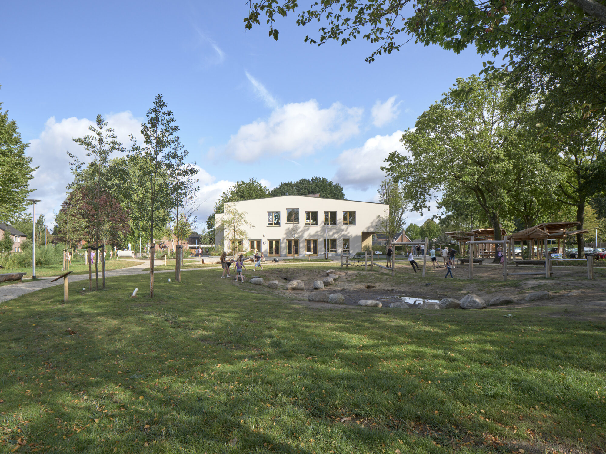 - Primair onderwijs met lokalen voor kleuteronderwijs en lager onderwijs, turnsportzaal, een refter/eetzaal en diverse administratieve en functionele ruimtes