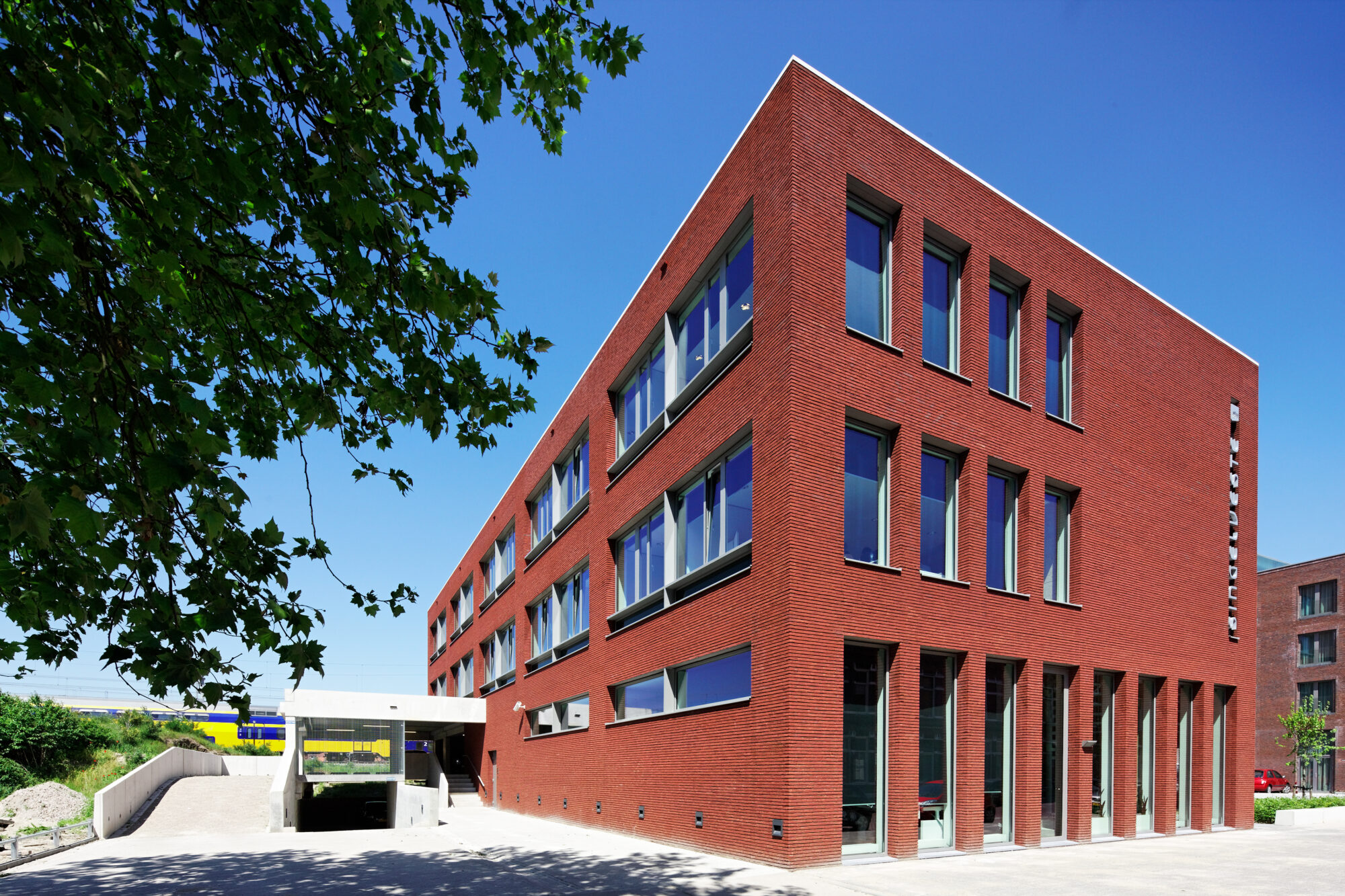 De zorgvuldig uitgekozen Hilversum formaat metselsteen, de diepe negge en teruggestreken lintvoeg laten het gebouw moeiteloos passen in de locatie en geven het een duurzame en statige uitstraling. De detaillering en het materiaalgebruik zijn doeltreffend en sprekend, en zo gekozen dat deze in de loop van de tijd hun schoonheid behouden.