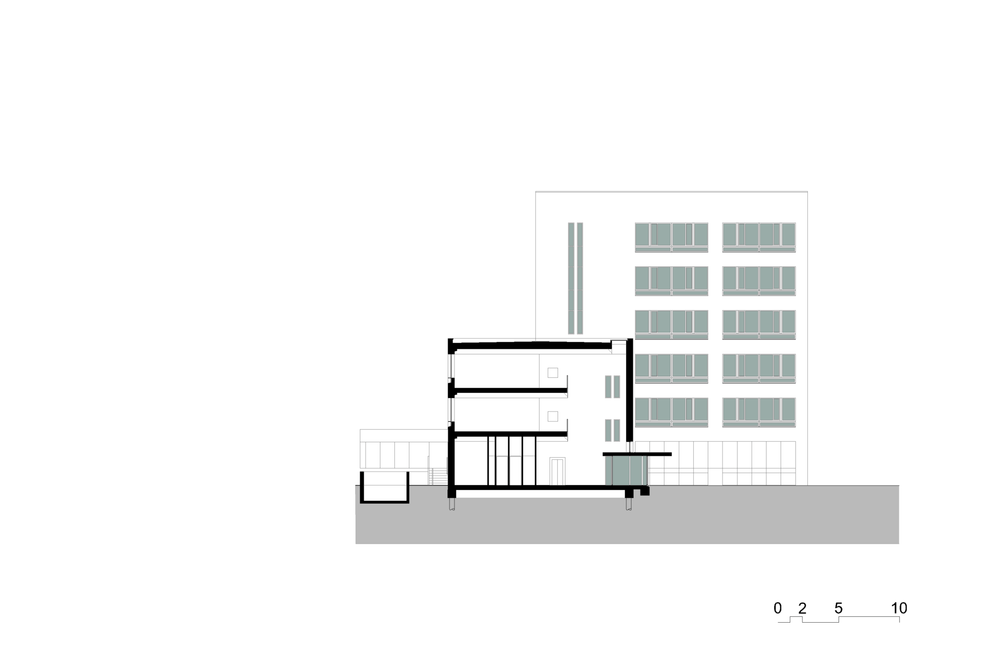 De maatvoering van het gebouw is uitgezet op het standaard kantoorstramien in een veelvoud van 1,8 meter, als ook op de onderliggende parkeerkelder.