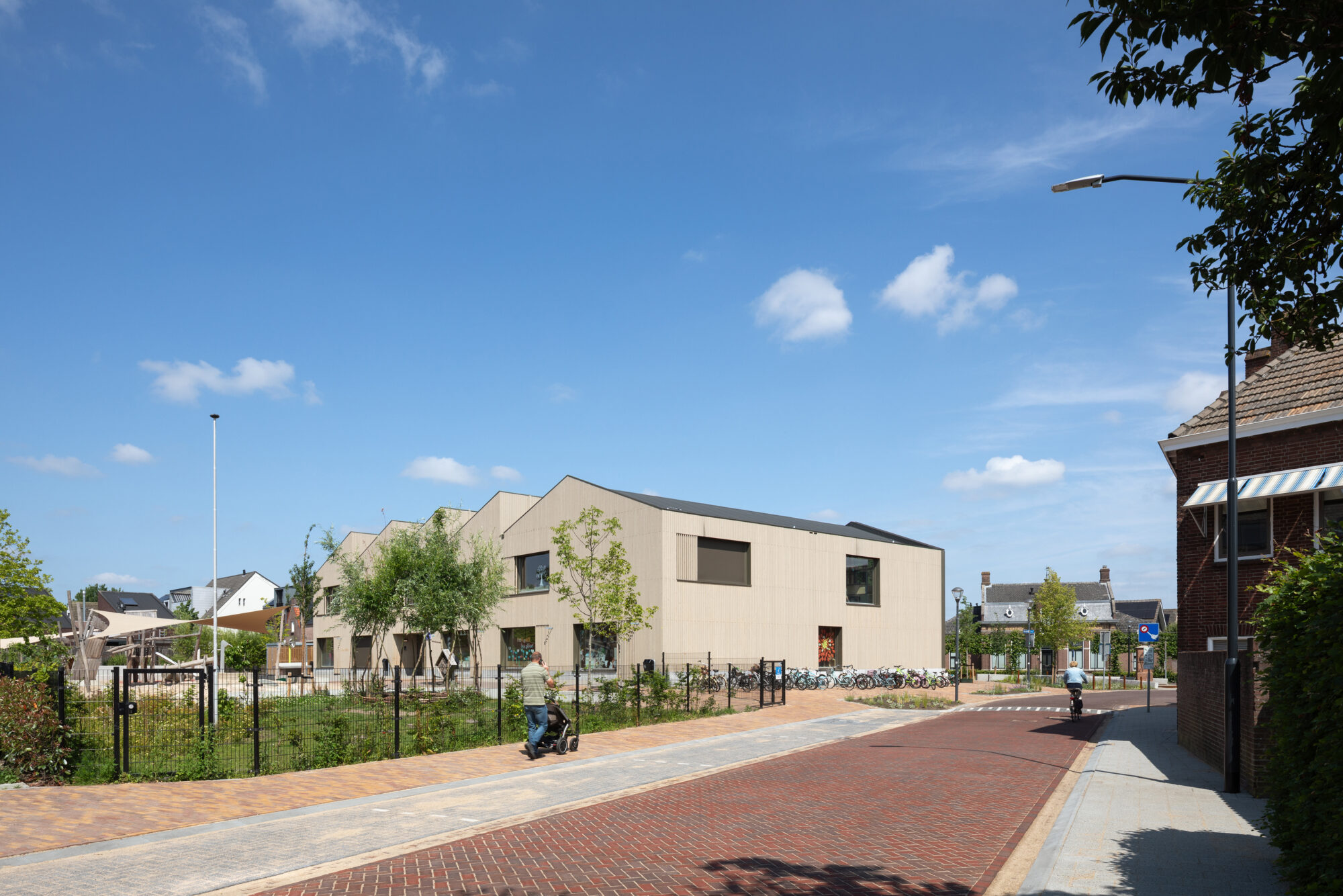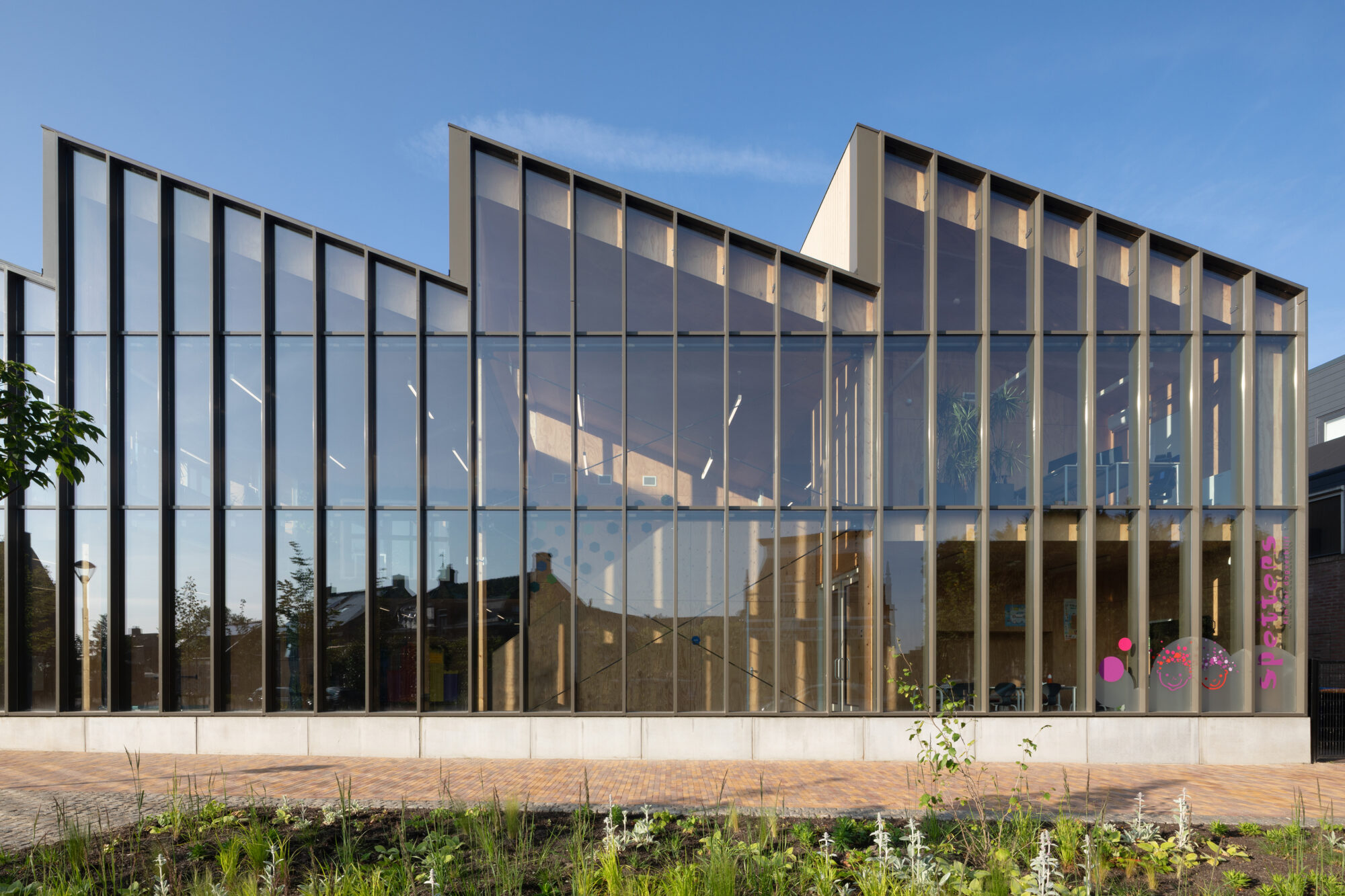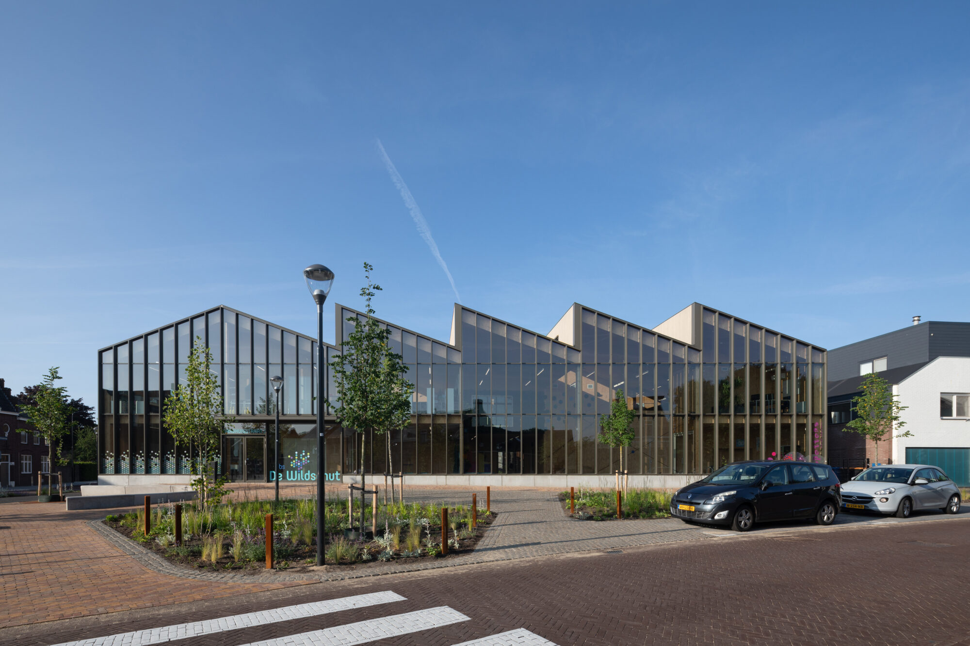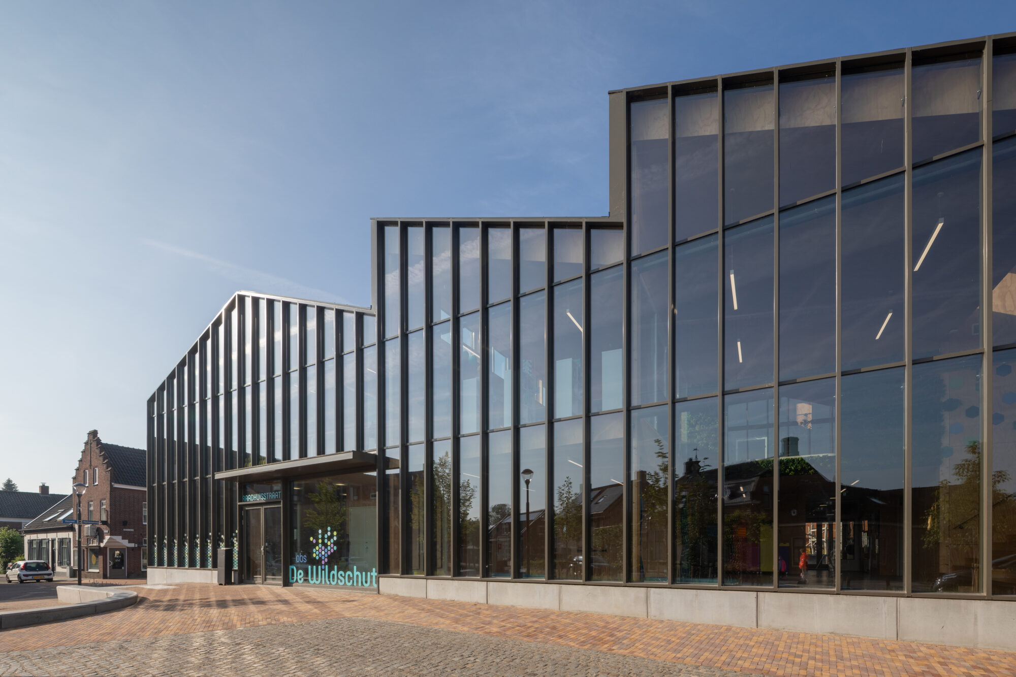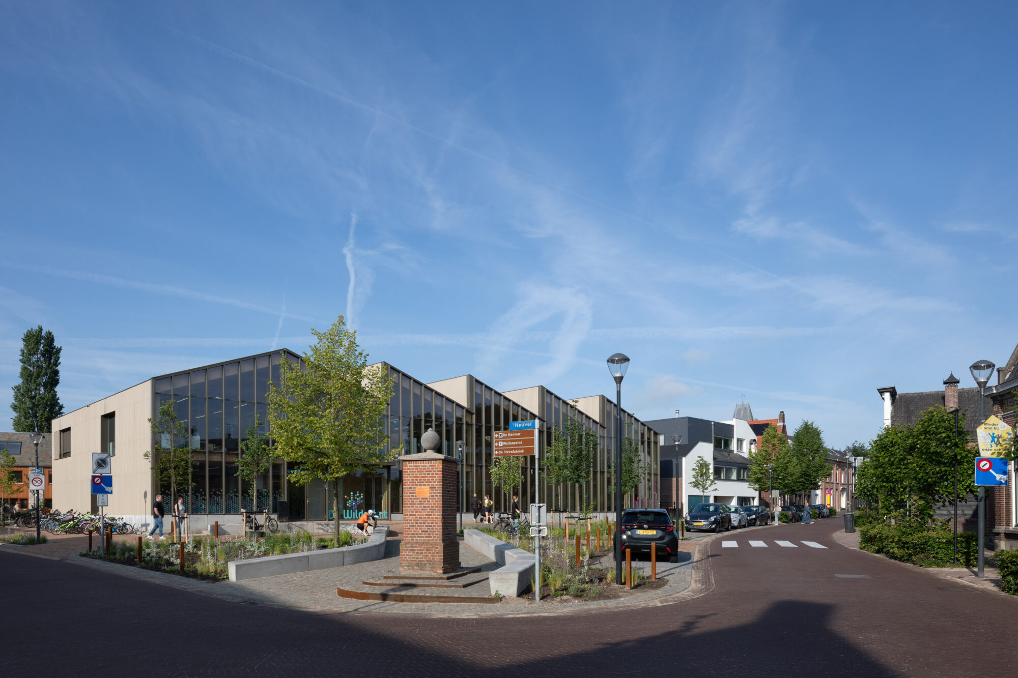 De transparante voorgevel laat het interieur aansluiten met het dorp. Het gebouw opent zich letterlijk door het gebruik van veel glas. Een sterk verticaal reliëf in deze gevel opent en sluit het interieur wanneer je het gebouw passeert. De rooilijn van de voorgevel wijkt waardoor de historische verbinding met de Molenstraat visueel wordt hersteld.