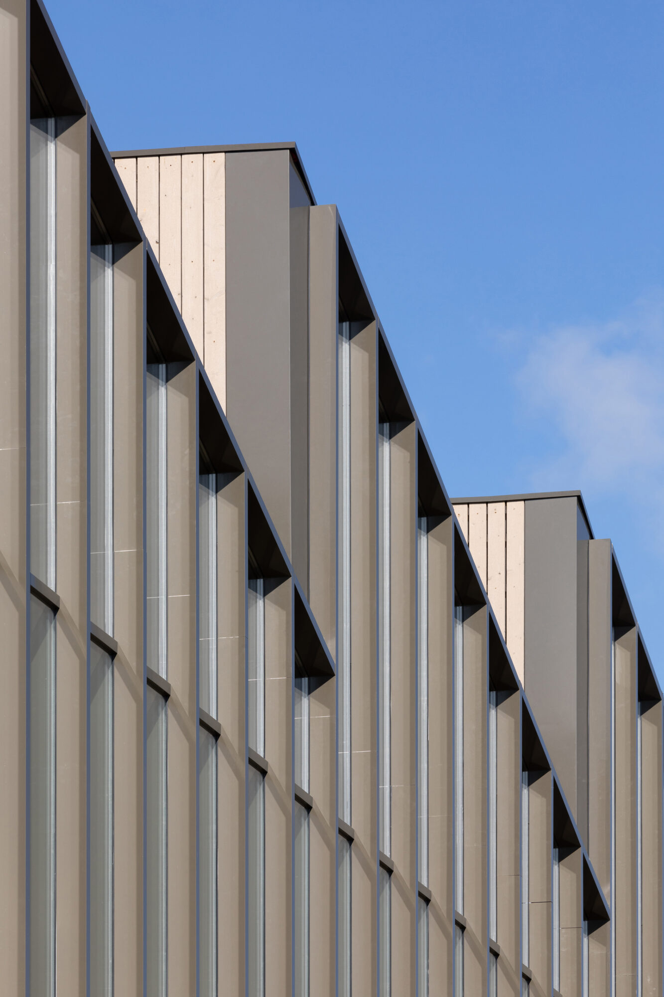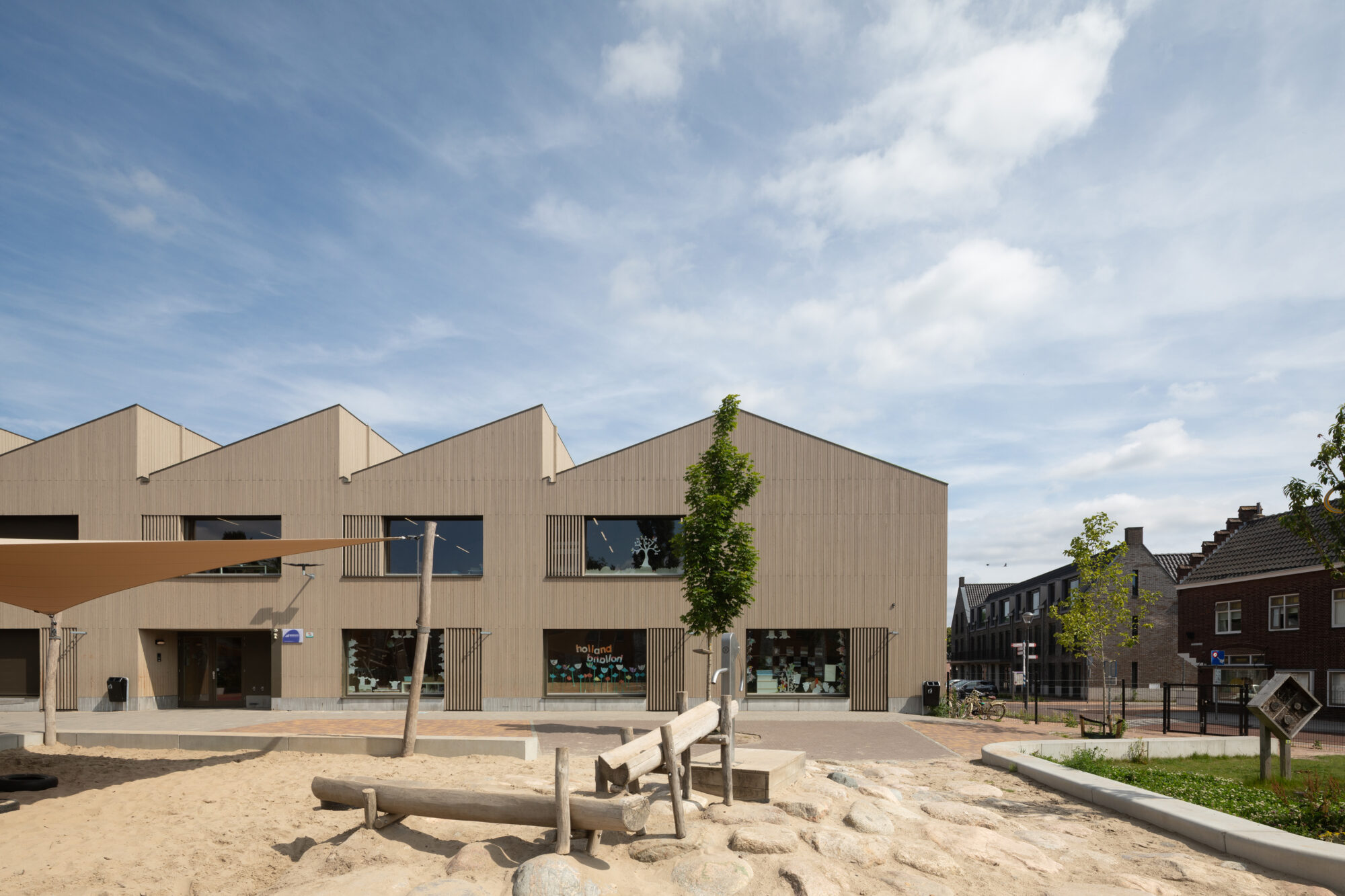 De karakteristieke sheddaken, die ter plaatse van de kopgevel worden gespiegeld, maken het gebouw passend in de maat en schaal van het dorp. Tevens zijn ze een subtiele verwijzing naar de verschijningsvorm van de voormalige leerlooierijen, een industrie die heeft bijgedragen aan de ontwikkeling en groei van het dorp.